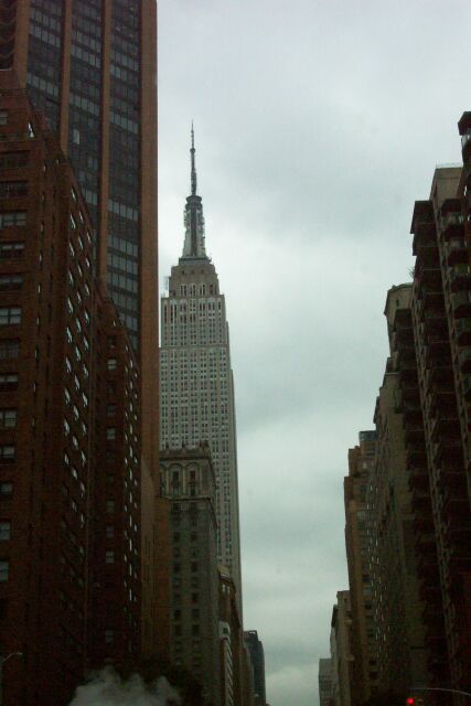 The rain has left us for now, however cloudy skies remain with the threat of rain present. The alarm clock sounded early today as we have a long way to drive (about 470 miles). We again enjoyed a fabulous breakfast before settling into our seats for the day's journey. Leaving Cooperstown we encountered some road closures which caused us to revise our route. Our route today again afforded us the opportunity to enjoy the beautiful farms and historic homes which dot upstate New York. Before long we found ourselves approaching the banks of the Hudson River. We crossed the Hudson going over the George Washington Bridge into upper Manhattan. Keeping with the baseball theme of yesterday, we drove past Yankee Stadium, where a game was in progress between the Yankees and Detroit Tigers. From there, we continued to the East side of Manhattan before turning south. We crossed back to the west side at midtown, passing the base of the Empire State Building (Our only picture for today). Turning south at the Hudson River, we exited lower Manhattan, passing the former site of the World Trade Center towers. As we left Manhattan, we both were trying to imagine how anyone who drives for a living in NYC could maintain their sanity. After crossing the Narrows bridge, we met up with US95 (New Jersey Turnpike) for the remainder of our trip to DC. Darkness had fallen on Washington DC about an hour prior to our arrival at 8:00pm. After unpacking the car and checking into our room we briefly looked at where we were off to tomorrow and how we might get there. Our first scheduled tour tomorrow is at the Bureau of Printing and Engraving at 8:00am. The weary travelers fell gratefully into bed for a good night's sleep and an early rising.